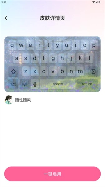 3. 进入主题页面后,点击下方的【一键启用】,就可以成功更换手机键盘皮肤了。