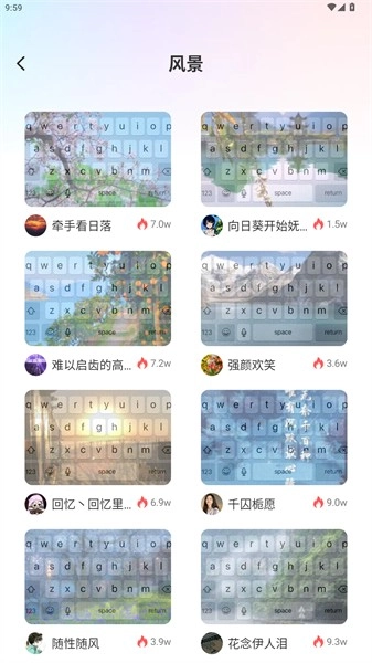 进入应用后,主页上会展示出多种不同类型的键盘风格供你查看。