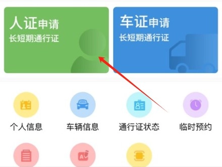 2、进入后点击人证申请/车证申请
