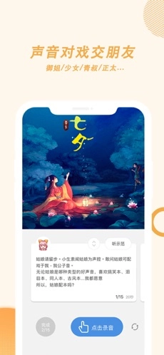 3、3分钟即可完成一个配音的,一个个原创作品也是可以分享,让更多的人听到。