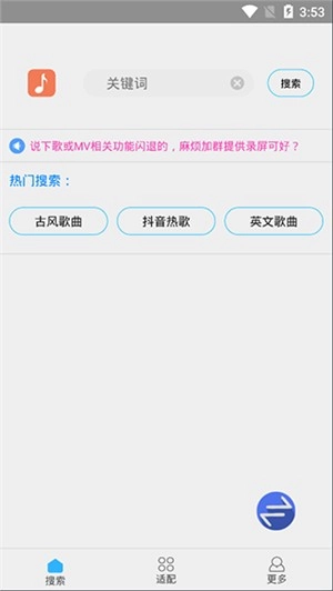 3. 如果找不到原唱,用户可以点击右下角的双向箭头按钮切换到搜索引擎路由。