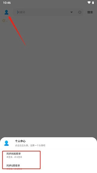1、点击左上角进入个人中心,在下面就可以看到同步网易歌单和QQ音乐歌单;