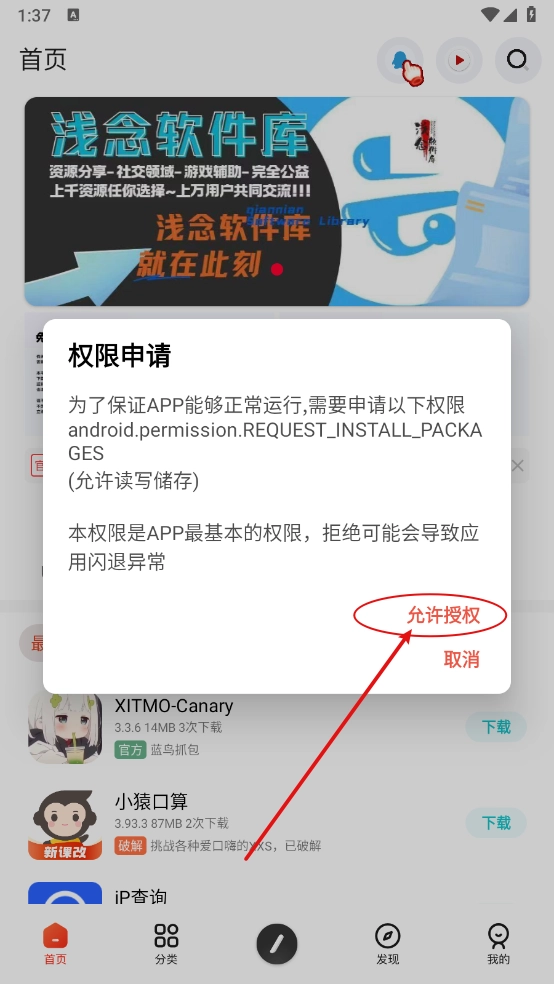 1、首先在本站获取软件,一键启动后,授予相关权限以允许其访问。