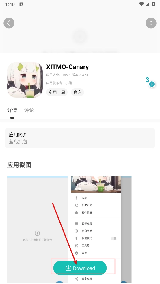 4、一键打开进行详情页,点击底部"",完毕即可安装使用。