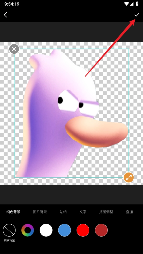 3、完成后即可查看抠图效果,支持点击精修去除边缘图案,还可以选择图片背景、文字、抠图调整等,完成后点击右上角对钩即可。