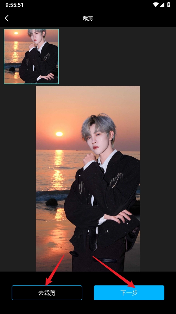 1、进入一键抠图页面后上传需要精修的图片,可手动裁剪掉不需要的部分,操作完成后点击“下一步”按钮。