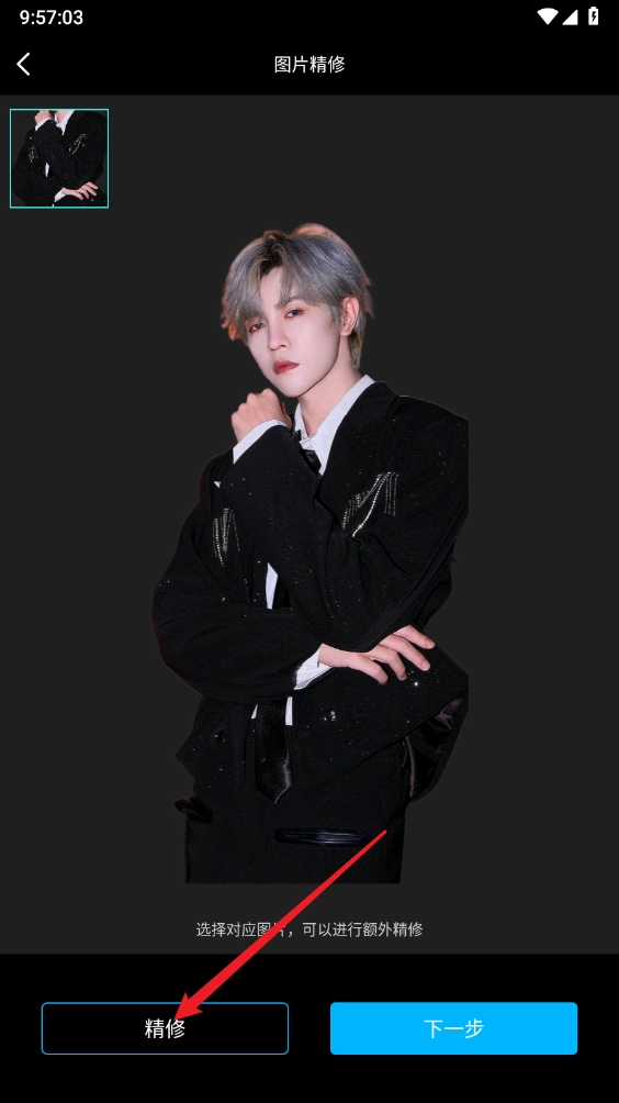 3、完成抠图后点击"精修"一键打开。
