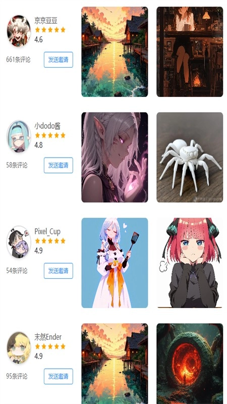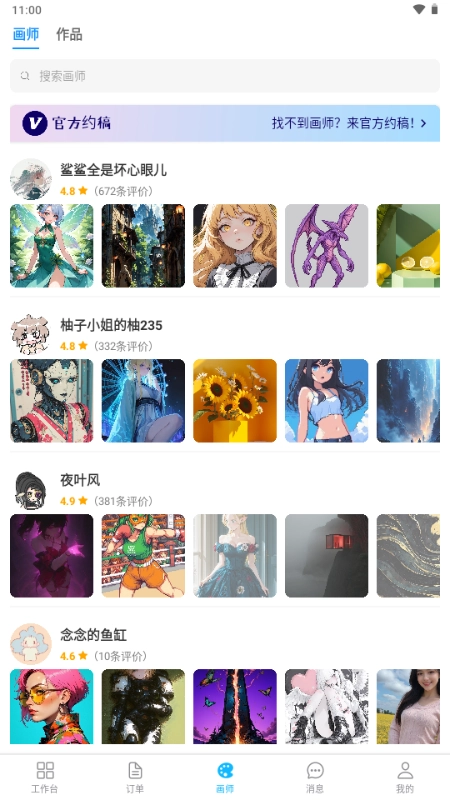4、打开"画师"板块,涵盖多个画师的作品,支持直接搜索画师。