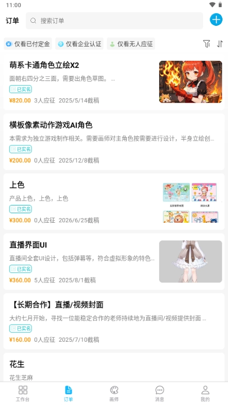 2、进入主页,就可以发布订单,挑选AI艺术家。