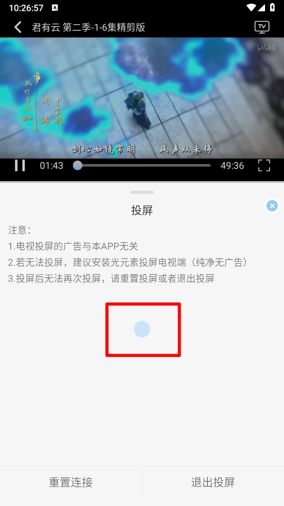 4、最后进行搜索连接投屏设备后,即可开启投屏播放,手机和投屏设备要处于同一网络下。