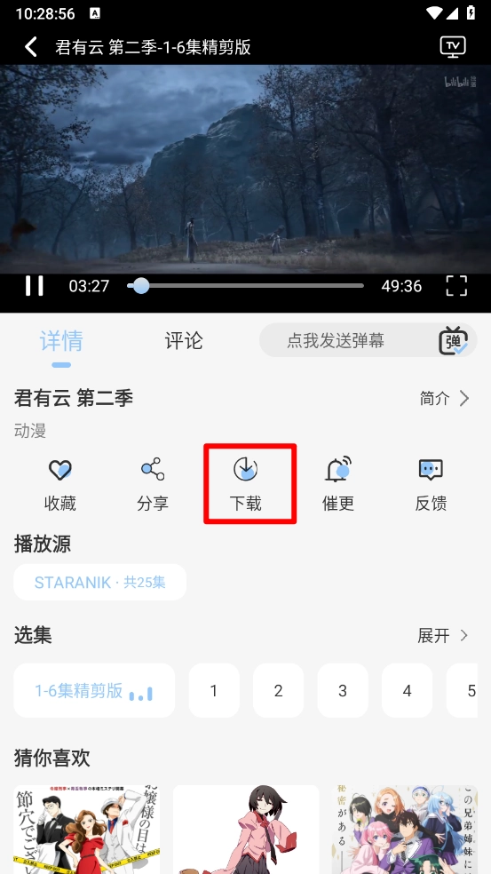 2、在播放详情页点击""按钮。
