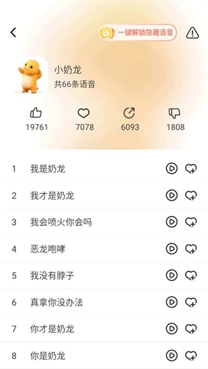 4、比如点击"小奶龙"进入,如图,点击语音右边的小说"爱心"图标即可收藏。