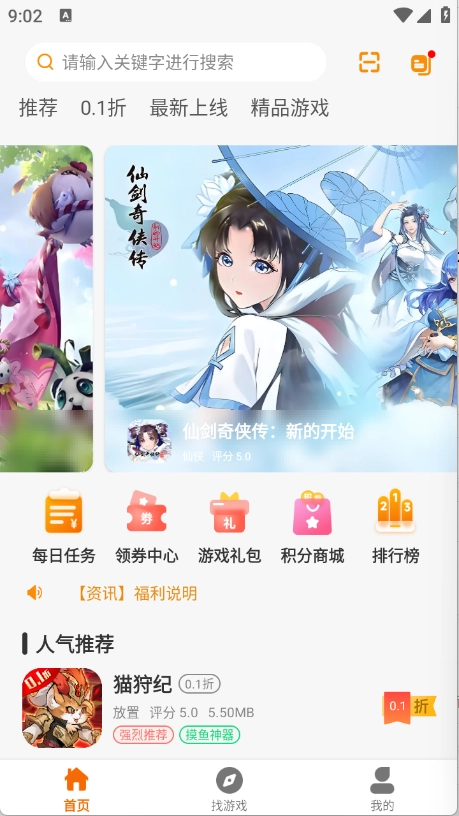 1、根据自己的游戏偏好和历史游戏数据,会智能地为推荐适合他们的新游戏。