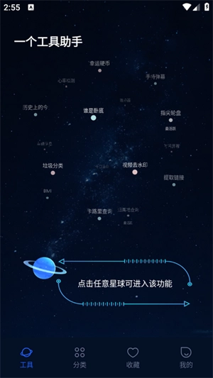 2、进入工具板块,涵盖多个功能,如图,点击任意星球可进入该功能。