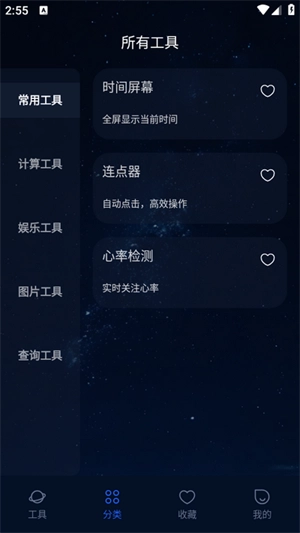 3、切换至分类板块,可以根据分类选择所需的功能,支持点击右边的小爱心收藏功能。