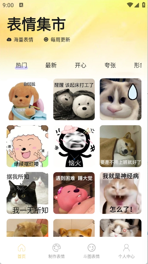 2、首页页面汇集了海量的热门表情包,各种类型应有尽有。