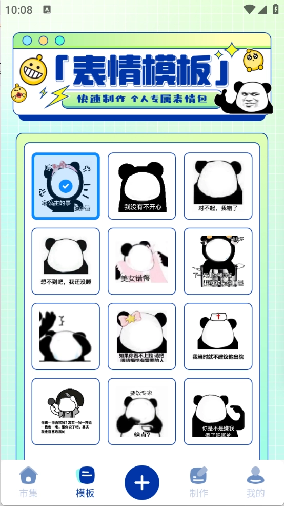 2、“市集”页面,提供了超级多的表情包资源,都是当前热门的资源。