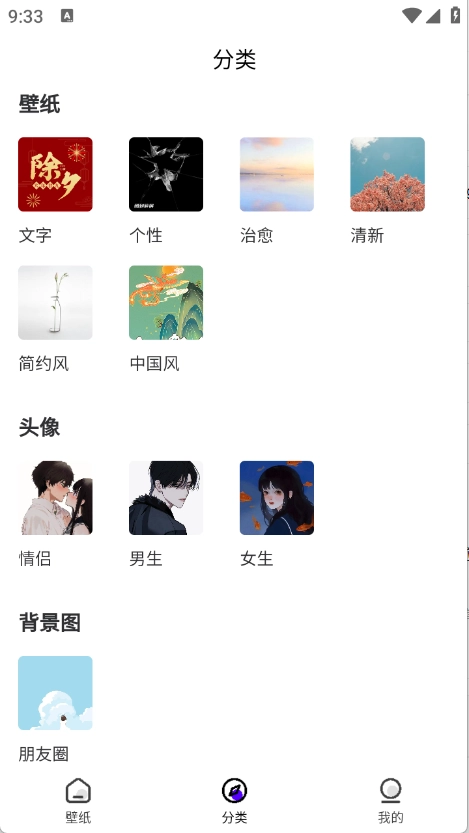 3、分类页面包含了各种头像、壁纸以及背景图等都有。