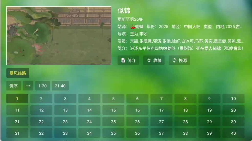 4、找到想看的影片直接点击,可以切换播放源、选集以及收藏等。