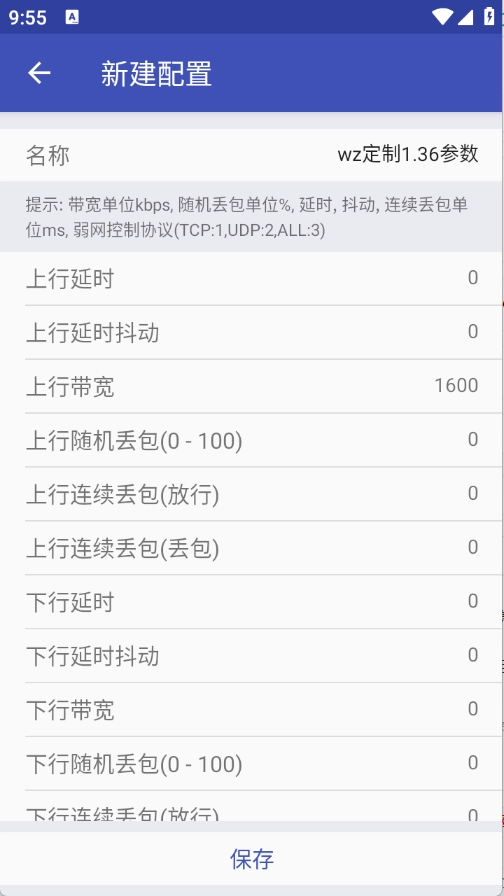 2、支持自定义带宽限制、延迟时间、丢包率、抖动等参数,模拟2G/3G/4G/5G或Wi-Fi等不同网络环境。