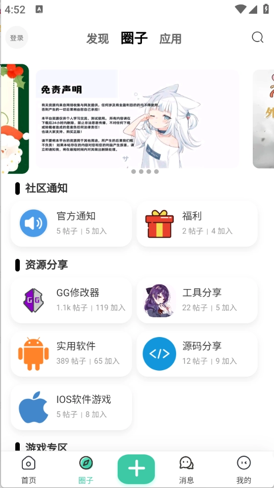 3、“圈子”页面,可以加入感兴趣的圈子,结交更多的好友。