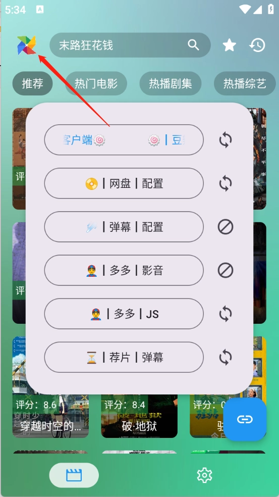 4、点击左上角风车标志可以切换播放源。
