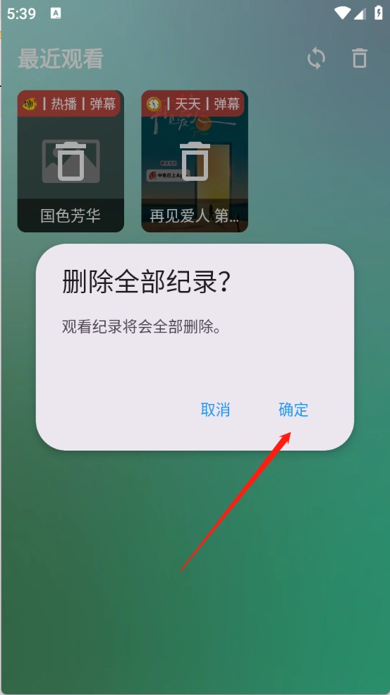 2、就出现全部的跟团看历史了,点击右上角的“删除”。