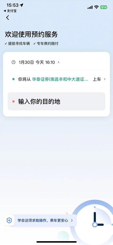 3、之后选择上车地以及目的地即可