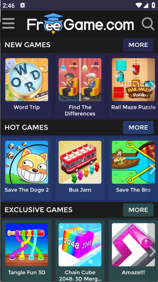 FreeGame拥有海量游戏资源,只需点击即可直接畅玩,无需额外安装;系统还会依据用户的偏好推荐同类型游戏,让玩家能及时发现心仪的游戏资源;同时支持关键词精准搜索,喜欢玩游戏的用户可千万别错过啦。