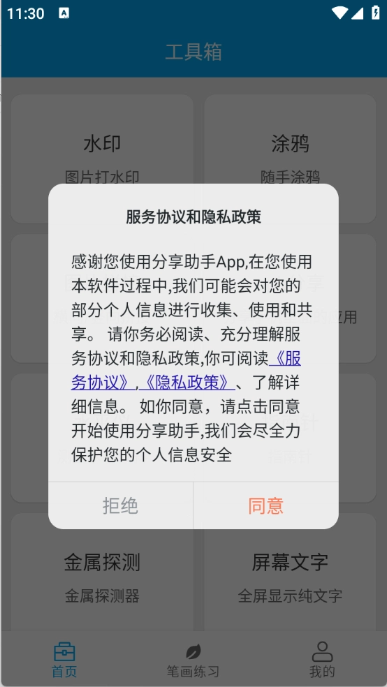 1、用户首先需在本站使用分享助手功能,查看并同意隐私政策及用户协议。