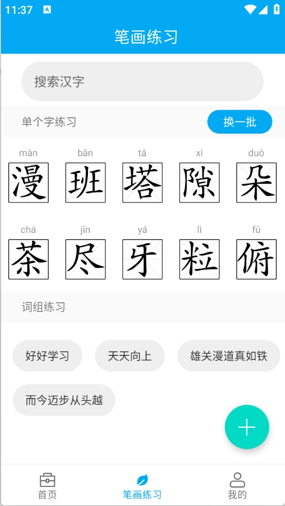 4、“笔画练习”页面,帮助用户练就一手好早字哦。