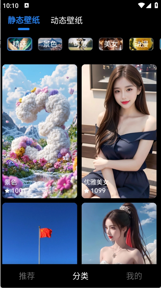 2、推荐页面根据当前热度将壁纸进行了详细的归类。