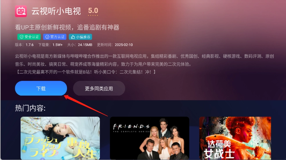 5、用户找到需要的电视软件资源点开进入详情页,可以看到详细的介绍以及耳机图,直接点击“”,等待安装完成即可。