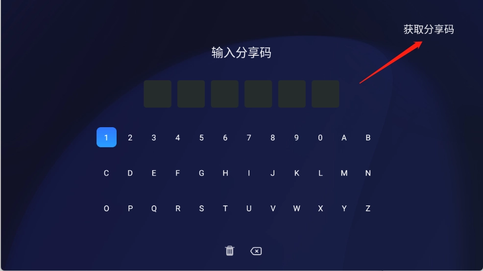 2、接着点击右上角的“获取分享码”。