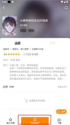 2、在漫画详情页点击最下方的【开始阅读】。