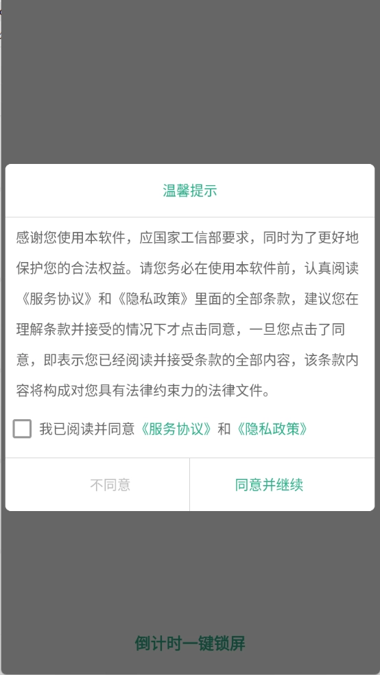 1、首先在本站使用倒计时一键锁屏功能,查看并同意隐私政策与用户协议。