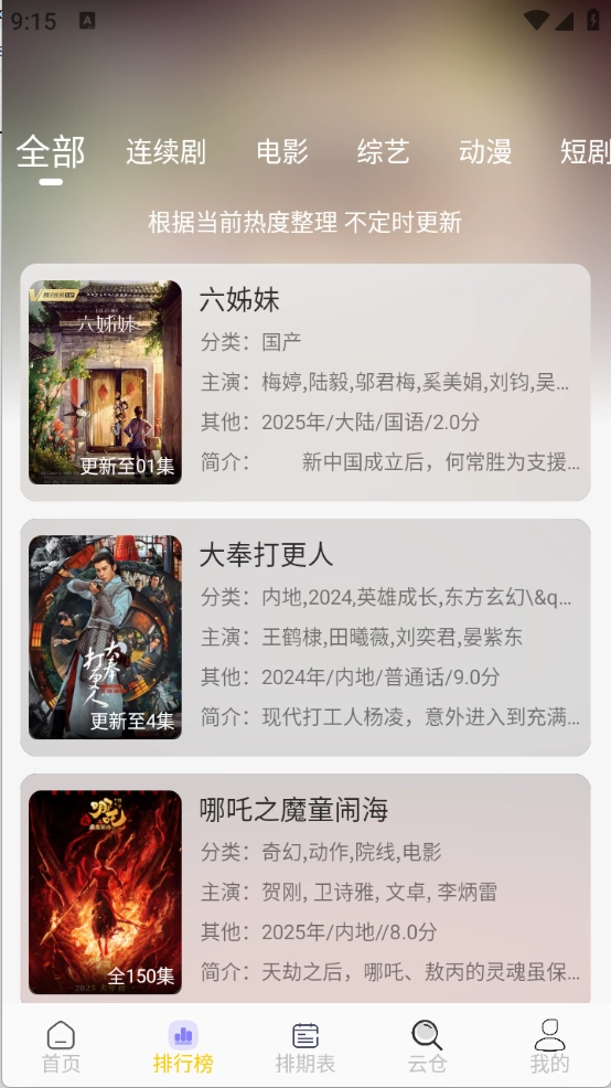 3、排行榜根据当前热度将影视进行了整理排序。