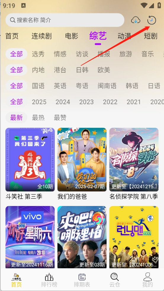 2、进入到首页之后,顶部栏中有很多的影视资源,保护拿了电视剧、电影以及综艺等类型。