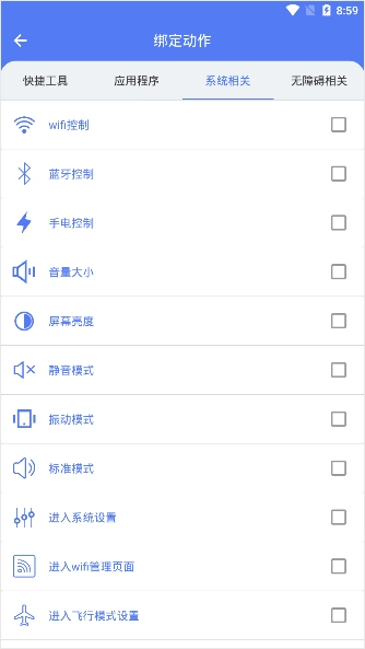 用户可选择手势动作来自由绑定到各种快捷工具以及应用程序上进行使用。