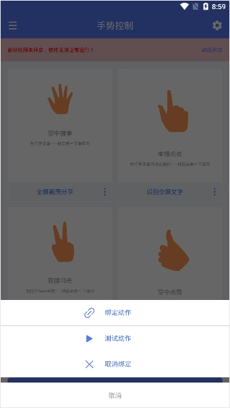 在不想继续绑定手势动作进行快捷控制使用时可以点击取消工作进行使用。