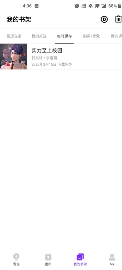 4、最后回到“书架”界面,就能轻松找到已保存的漫画啦。