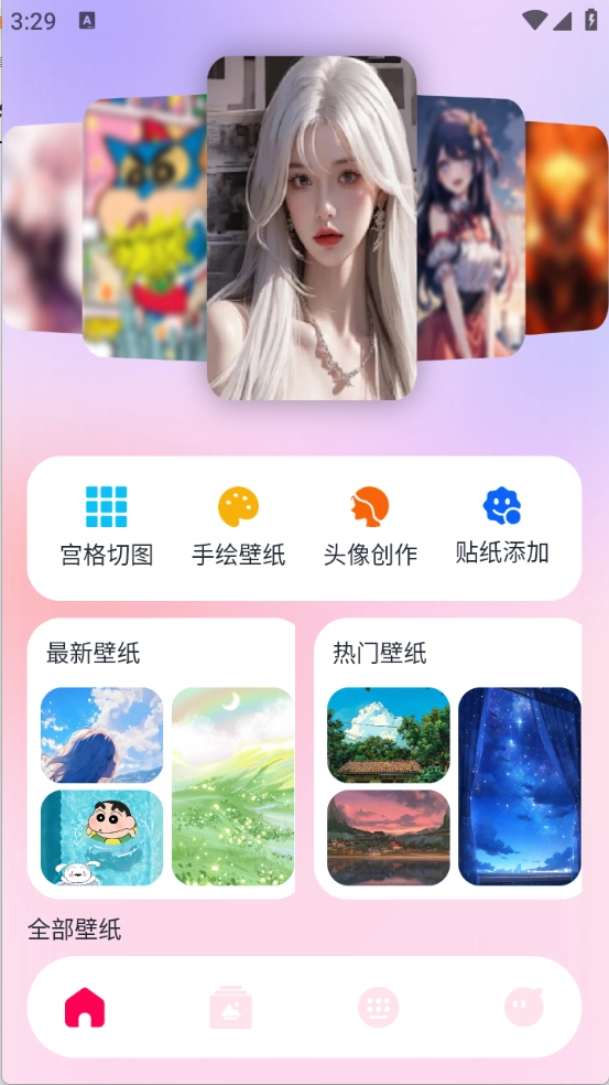 2、进入首页之后,为用户推荐了超级多的壁纸、头像以及贴纸资源。