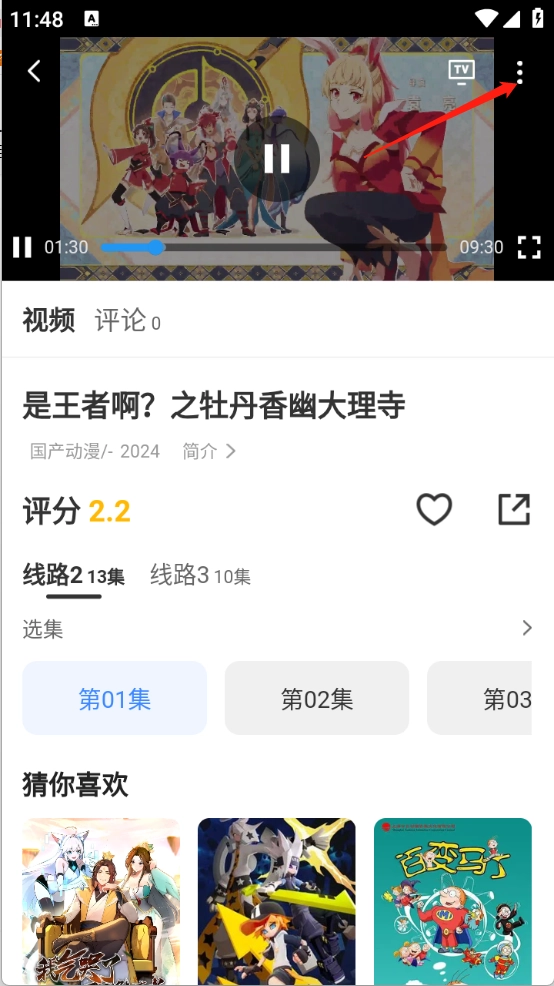 1、打开动漫播放页面后,点击右上角的三点图标。