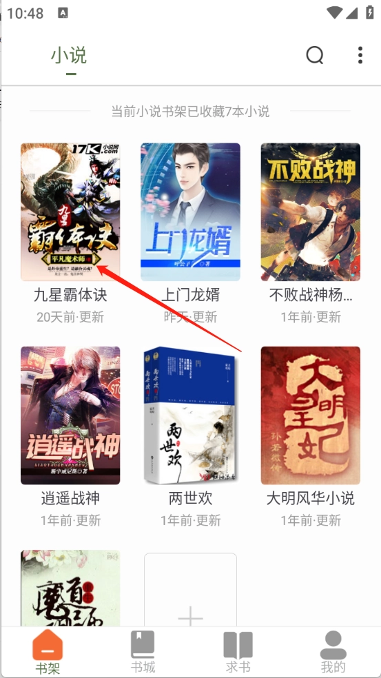 2、回到首页点击“书架”就可以看到小说了。
