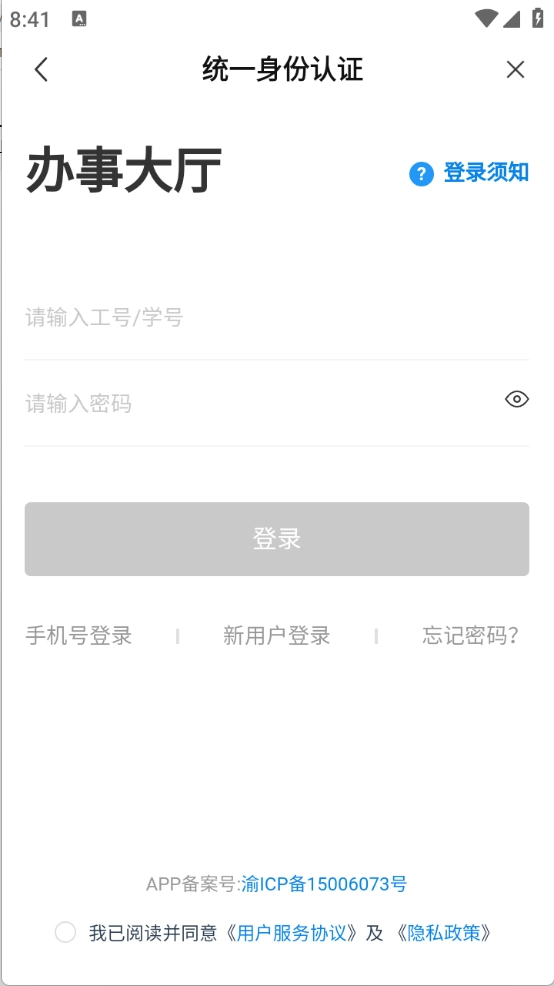 1、首次登录时,请选择新用户登录入口,通过身份验证来完成个人信息的绑定操作。