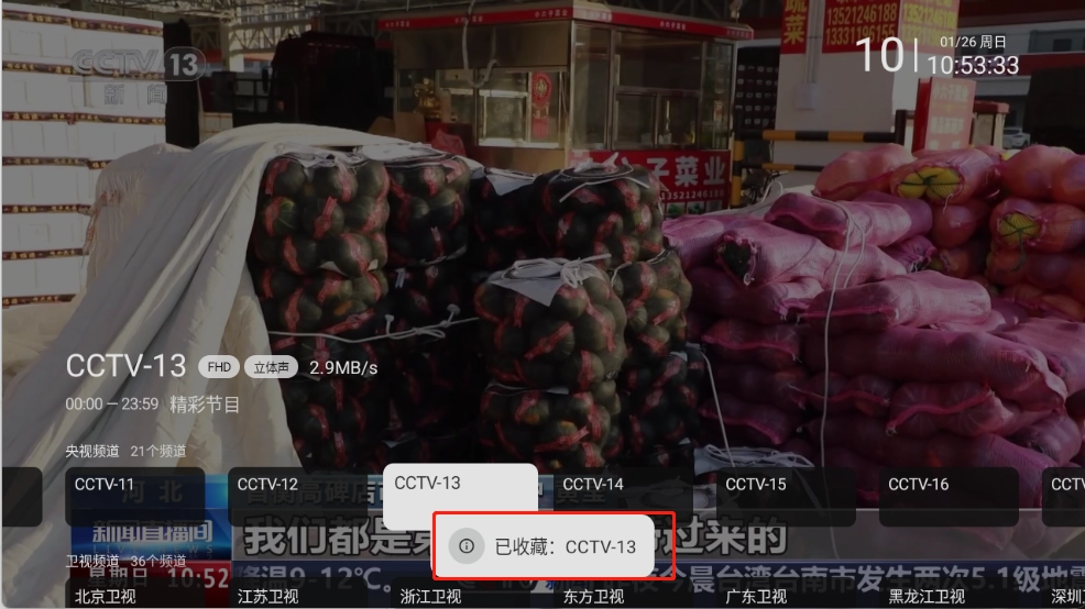 4、长按还可以收藏电视频道。