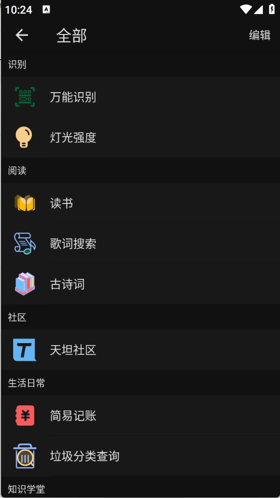 2、进入首页之后,包含了很多的工具,读书、扫描识别以及记账等功能。