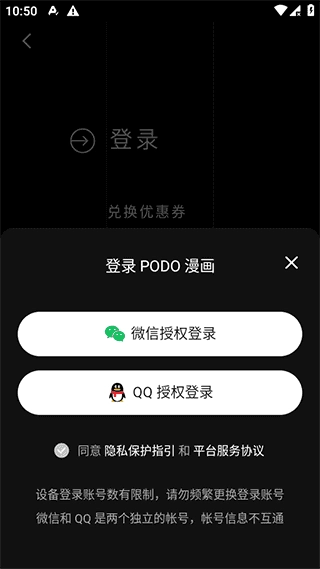 3、选择使用微信或QQ授权方式进行账号注册