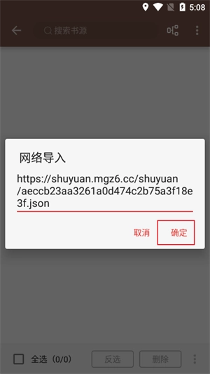 3、在弹出窗口中输入目标书源链接,确认无误后点击“确定”按钮。