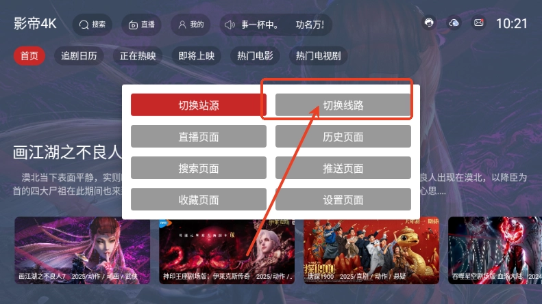 2、点击切换线路;
